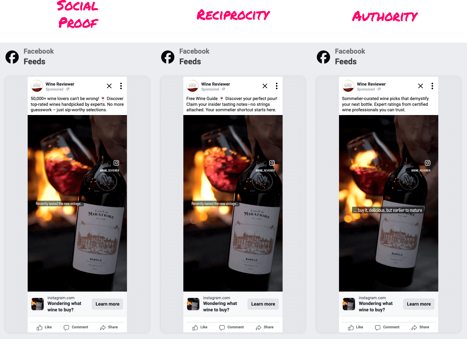 Just to focus on the primary text here. I also run an Instagram account with my brother. It’s called Wine Reviewer, if you like wine check it out (I know shameless plug). But say I would run ads for that, I could say something boring like: “Come follow us for frequent wine reviews!”
